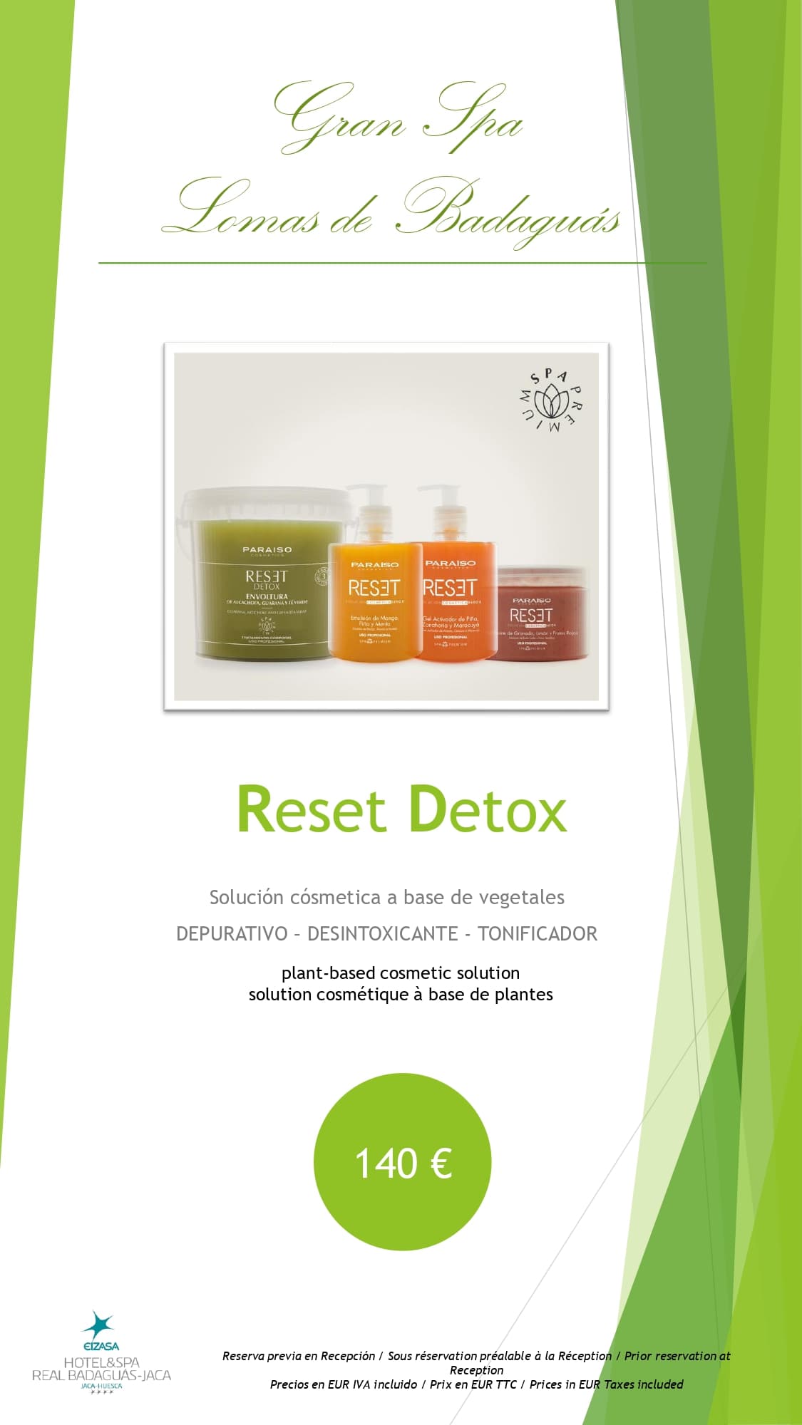 El Gran Spa Lomas de Badaguás es un área wellness de más de 500 m2 que cuenta grandes ventanales e impresionantes vistas a la Peña Oroel. Los servicios que ofrece consisten en un circuito de hidroterapia, una amplia carta de tratamientos y masajes y un completo gimnasio.